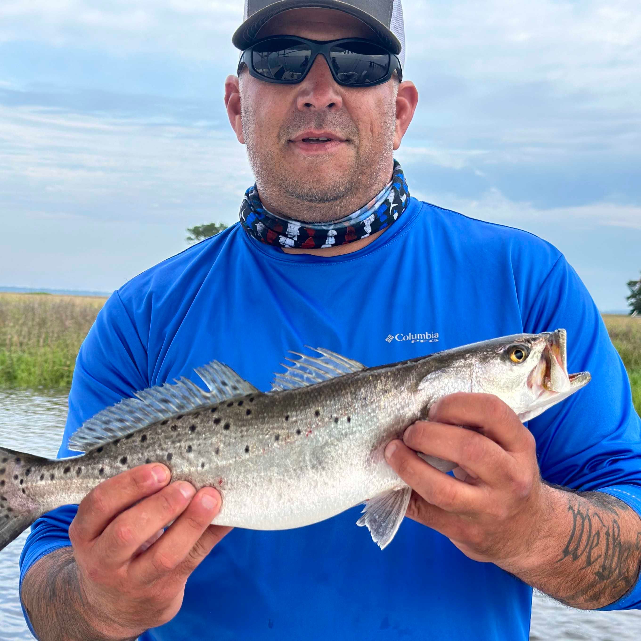 Sea trout, or speckled trout as the locals call them, are schooling fish that can make for fast action when you find them. They're most active in spring and fall when water temperatures are in their comfort zone, usually around grass beds and deeper holes. Specks have soft mouths, so they require a lighter touch than reds or drum, but they make up for it with aggressive strikes and decent numbers. They're excellent eating fish and perfect for anglers who like steady action over brute force fighting. When the trout bite is on, you can expect multiple hookups and bent rods all around the boat.